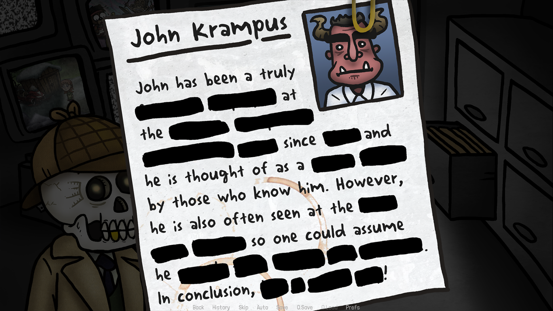Yuletide Regicide is a short comedic visual novel crime story with hand-drawn graphics. It's a game full of funny characters, conspiracies, and Christmas jeer – everything you need to get into that festive mood for the holidays. Solve the murder, save Christmas**!